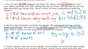 System of linear inequality word problems. Variables on both sides Linear equations 3. Write the equations for the system shown below. Write and graph a system of linear inequalities to represent this situation.