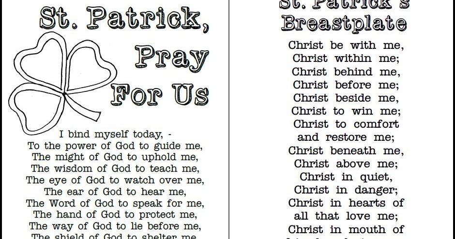 Christ before me Christ behind me Christ in me Christ beneath me Christ above me Christ on my right Christ on my left Christ when I lie down Christ when I sit down Christ when I arise Christ in the heart of every man who thinks of me Christ in the mouth of everyone who speaks of me Christ in every eye that sees me Christ in every. Christ beneath me Christ above me Christ at my right Christ at my left Christ in breadth Christ in length Christ in height Christ in the heart of every man who thinks of me Christ in the mouth of every man who speaks to me Christ in the eye of every man who sees me Christ in the ear of every man who hears me. A powerful song on Christian radio by Casting Crowns called Only Jesus has a different idea. Have your child color the cross above then cut and fold for an Irish prayer card to keep or share with family and friends. This prayer is called St. 389-461 AD - I bind unto myself today the power of God to hold. Patrick in your humility you called.