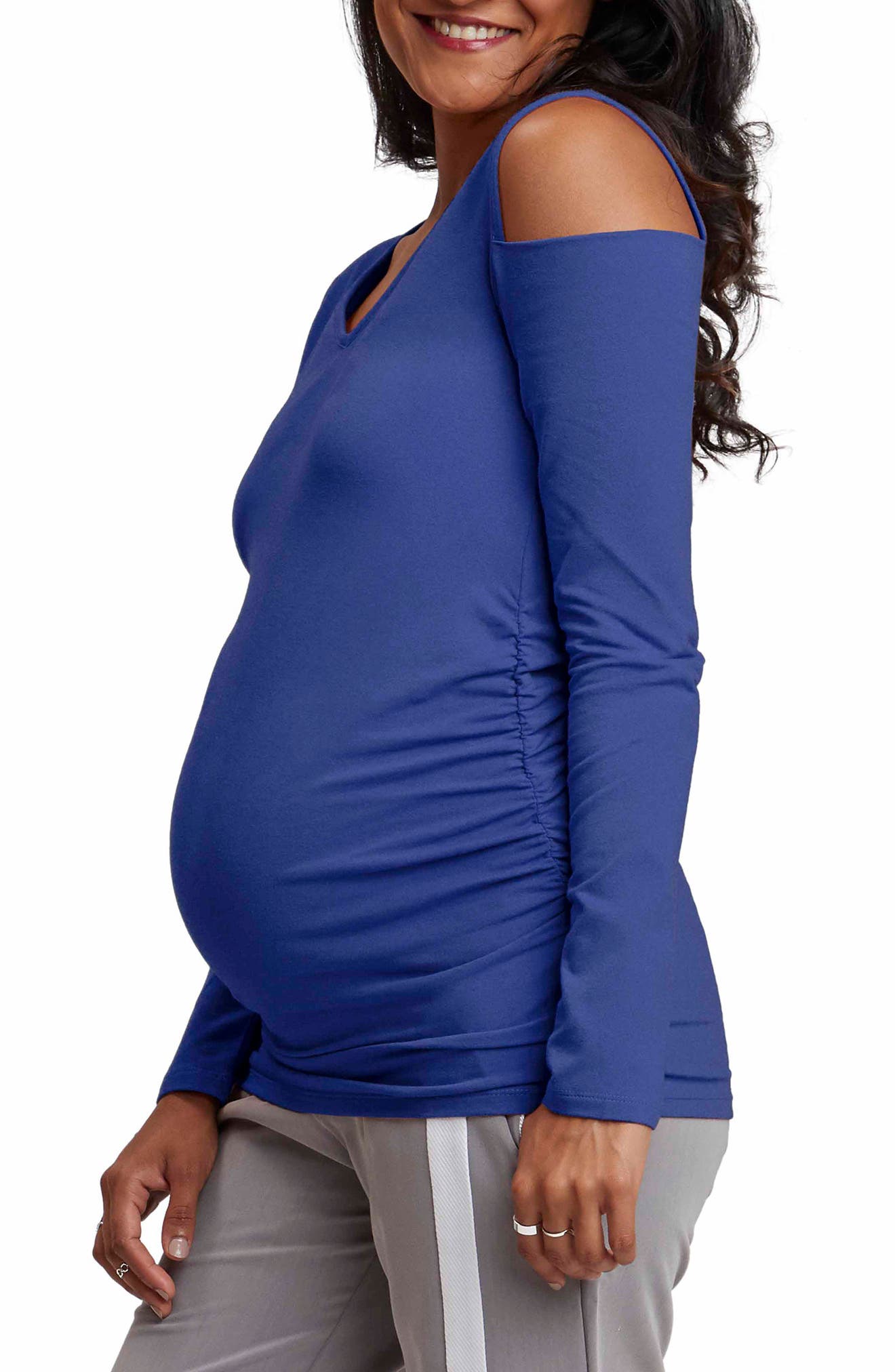 Womens Cold Shoulder Maternity Ruffle Top Dress. Details A short sleeve maternity top featuring a cold shoulder style a layered accent on front a rounded neckline and ruched sides. Content Care 57 Cotton 38 Polyester 5 Spandex Machine Wash Cold With Like Colors Gentle Cycle No Bleach Tumble Dry Low USA Size Fit. This maternity top featuring one cold shoulder is perfect for work or play. This maternity top featuring one cold shoulder is perfect for work or play. With comfortable maternity jeans embrace a flawless look and a confident feel. Rocking the Cold Shoulder Maternity Top LOCATION.